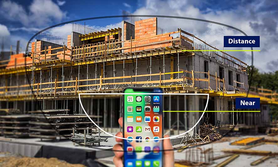 Lenses for seeing things close up and in the distance. These lenses have a distinct line in the middle of the lens, separating the reading section in the bottom of the lens from the distance section in the top of the lens