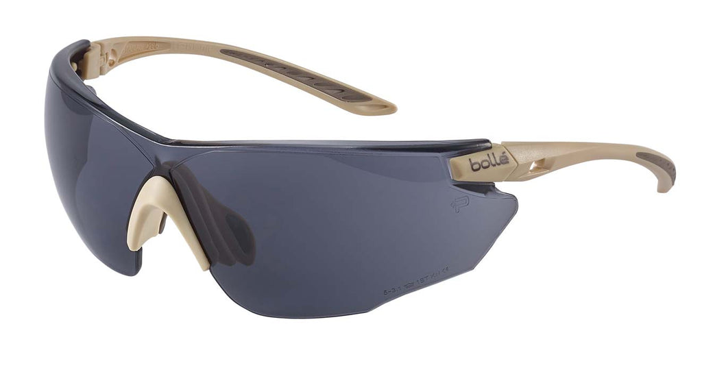 The Bolle Combat protective glasses/sunglasses with Platinum coating provide unique adaptability thanks to their easy-to-change mono-lens in clear, smoke and CSP versions, and their dual temple/strap system (with or without foam). These are the newest generation of hybrid ballistic glasses/sunglasses, STANAG 4296, EN166, EN170 and EN172 certified.