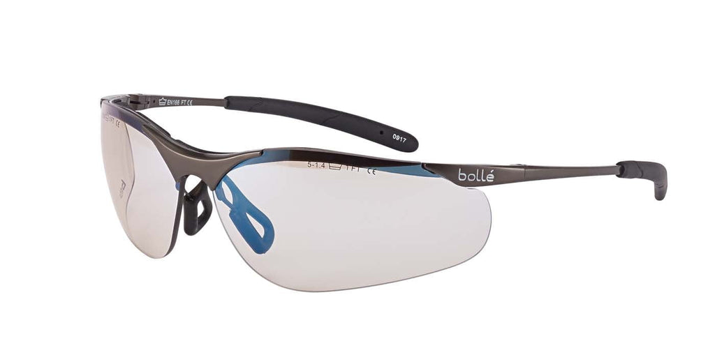 The Bolle Contour is a top selling half frame/semi-rimless, dual lens design which provides extensive eye coverage. Rubber nose pads & temple tips provide superior comfort and a non-slip fit. The Bolle Contour (Metal) is a metal frame version of the Bolle Contour (Sidewinder).