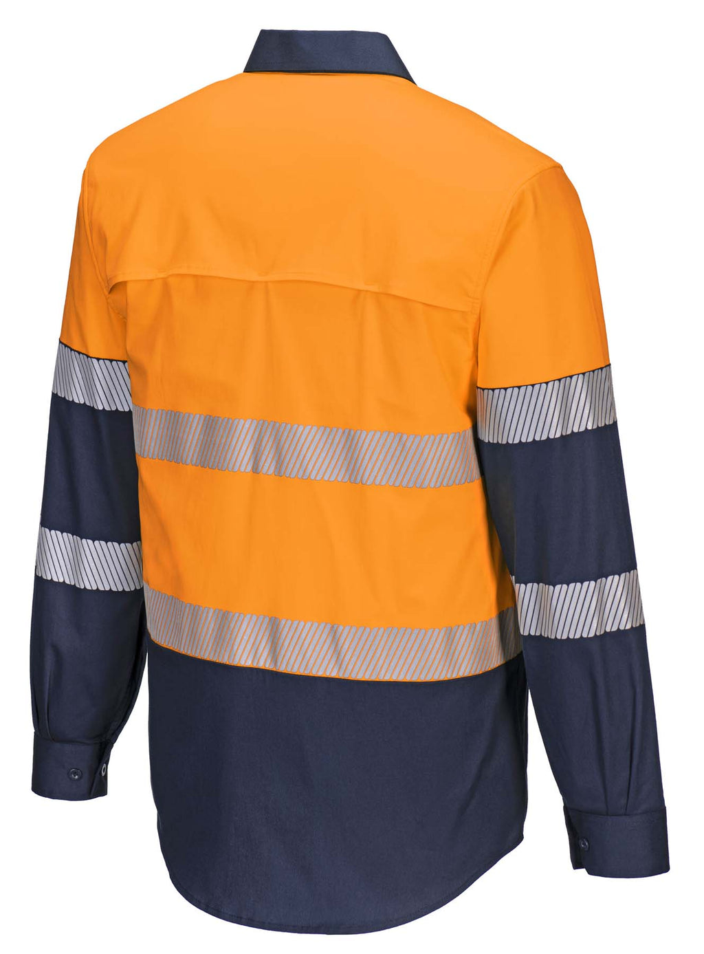 The Portwest Unisex Stretch Lightweight Reflective Taped Long Sleeve Hi Vis Shirt MS105 is a day and night Hi Vis Long Sleeve Shirt made with 98% cotton and 2% elastane for stretch. It also features segmented tape, two tone hi vis as well as double breasted pockets, pen divisions and a plastic button closer.