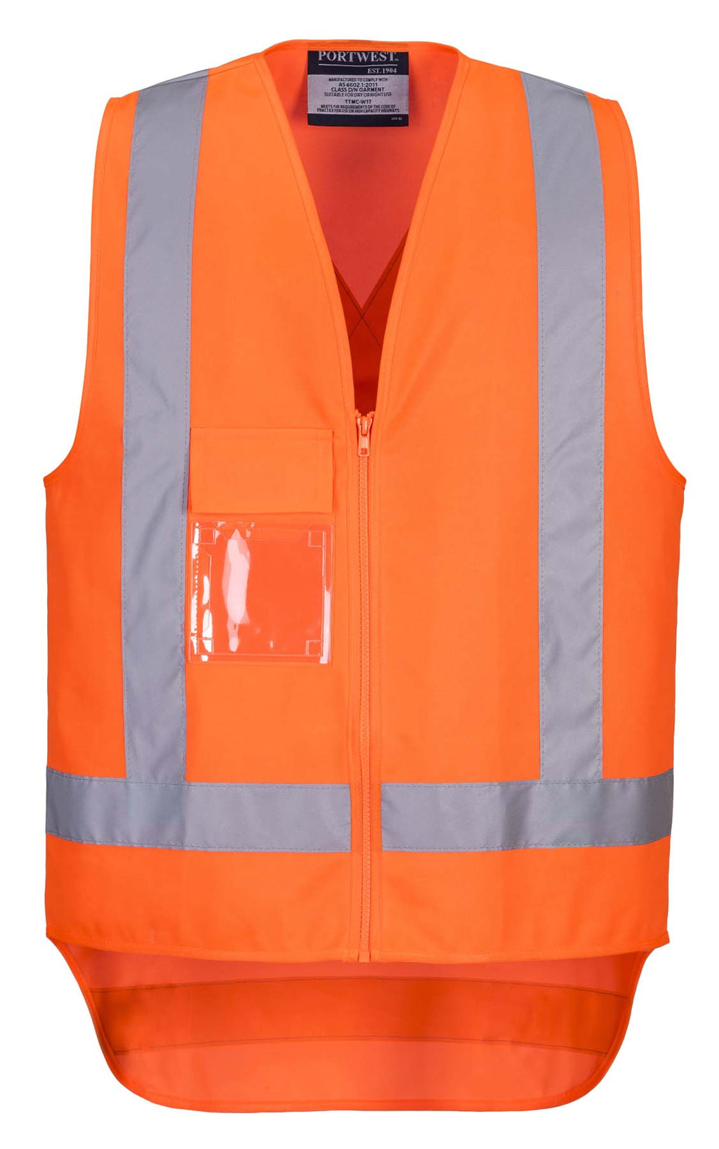 The Portwest Unisex TTMC X Back Reflective Taped Hi Vis Vest with Zip TM310 complies with AS/NZS 4602.1:2011 for Day/Night use and TTMC-W17 (Transit NZ).