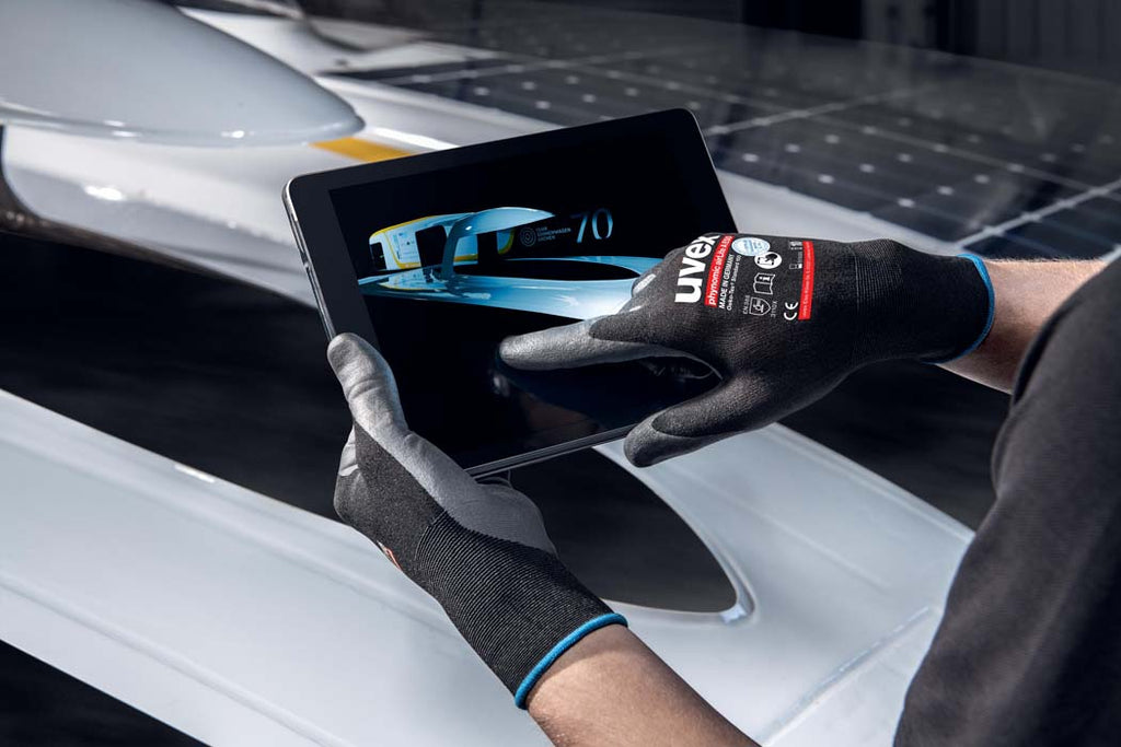 The uvex phynomic airLite B ESD is the lightest safety glove in its class and offers a noticeable difference in wearer comfort. The new cut protection gloves combines high sensitivity and tactile feel with lightness and breathability, all in one glove. This makes the uvex phynomic airLite B ESD perfect for precision work and handling very small or fine components — and you can still use almost all screens, tablets and mobile phones when you are wearing them.
