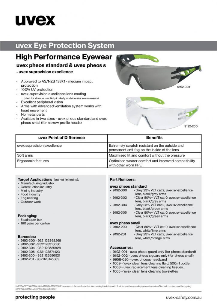 The uvex pheos is not just a pair of safety glasses: with its modern, fashionable looks, the uvex pheos is a good-looking accessory at work Innovative safety spectacle technology lies behind the attractive design: The heart of the glasses is the duo-spherical lens that does not just offer a wide field of vision, but is also particularly scratch-resistant on the outside and features an anti-fog interior thanks to the high-quality uvex supravision coating technology. Due to an additional frame and headband, the uvex pheos can be expanded into a set, depending on the field of use.